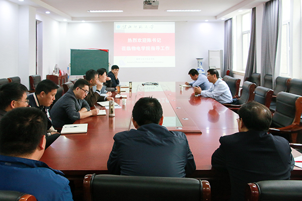 近日,校党委书记陈士夫在校党政办相关人员的陪同下到物理与电子信息学院调研指导工作。物理与电子信息学院领导班子、系主任及教师代表参加会议。