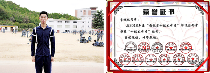 2018年度“安徽省十佳大学生”李城杭事迹简介: